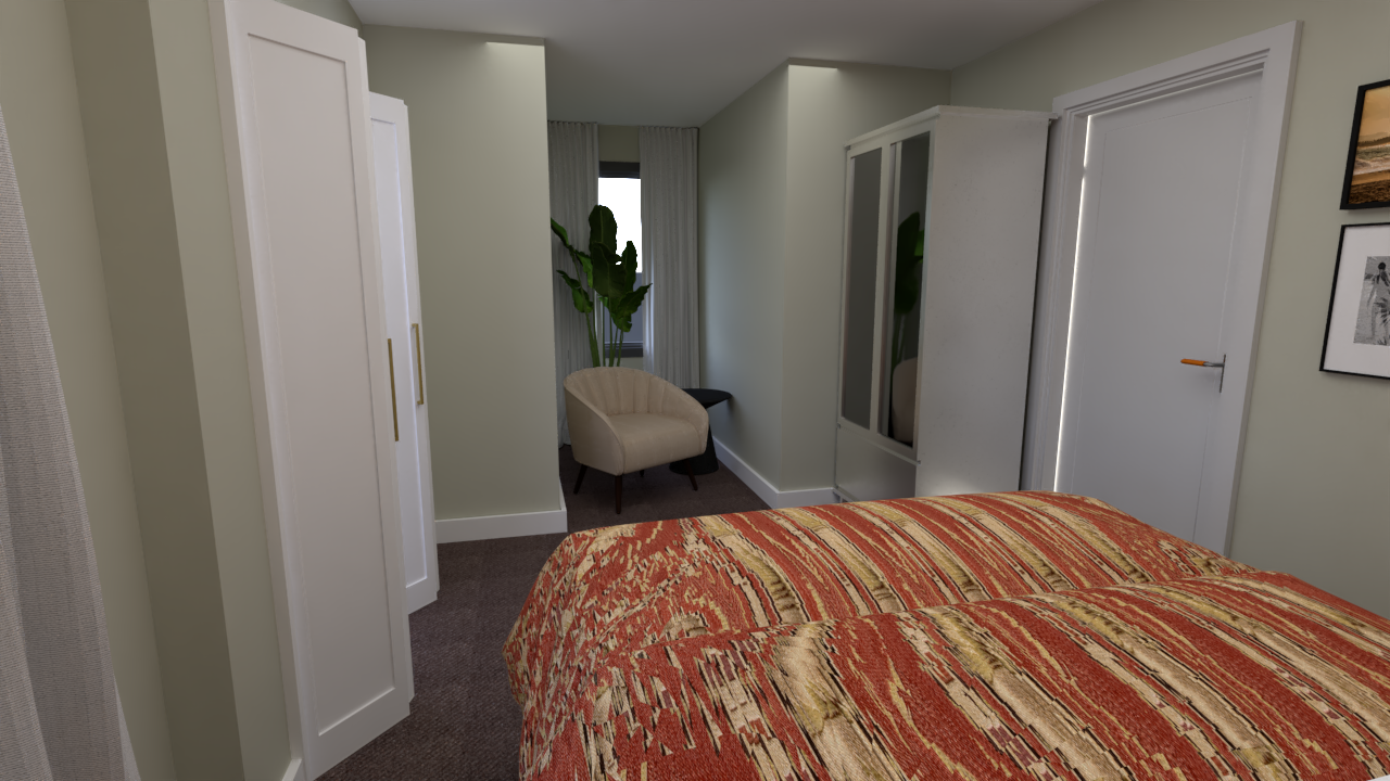 The client purchased the house 3 years ago and, after living in the home, wanted to make a few changes to update it. The spaces to update were the guest bedroom and the kitchen. The goal for the guest bedroom was to create a retreat for guests, but for it to have a soul. The client purchased a few items while traveling and wanted the space designed around them. The items were a bedding set and a picture. The goal for the kitchen was to create a more functional space and add storage. The appliances and sink placement were updated to create a more functional space, as well as adding new cabinets, countertop, and backsplash.